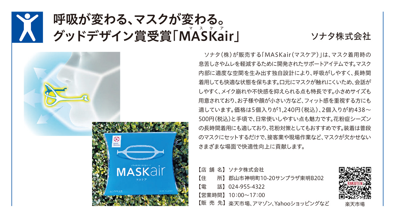 不織布マスク用マスクフレーム「MASKair」が、「郡山商工会議所 会報4月号」に掲載されました。